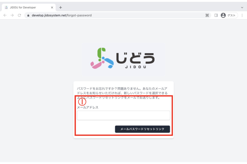 登録メールアドレスにパスワードリセットリンクが送信されます。
